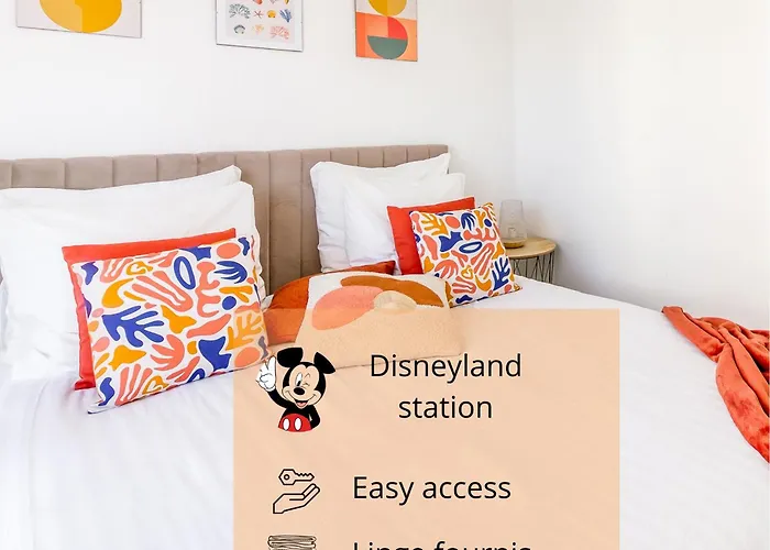 Au Coeur De Disneyland, Gare & Shopping A 2 Pas apartment features an equipped kitchenette, perfect for guests wishing to cook their own meals. Val d'Europe train station is about a 10-minute walk away, and Gare de Val d'Europe bus stop is within a few blocks of Au Coeur De Disneyland, Gare & Shopping A 2 Pas apartment. There is also a terrace with views of the city.